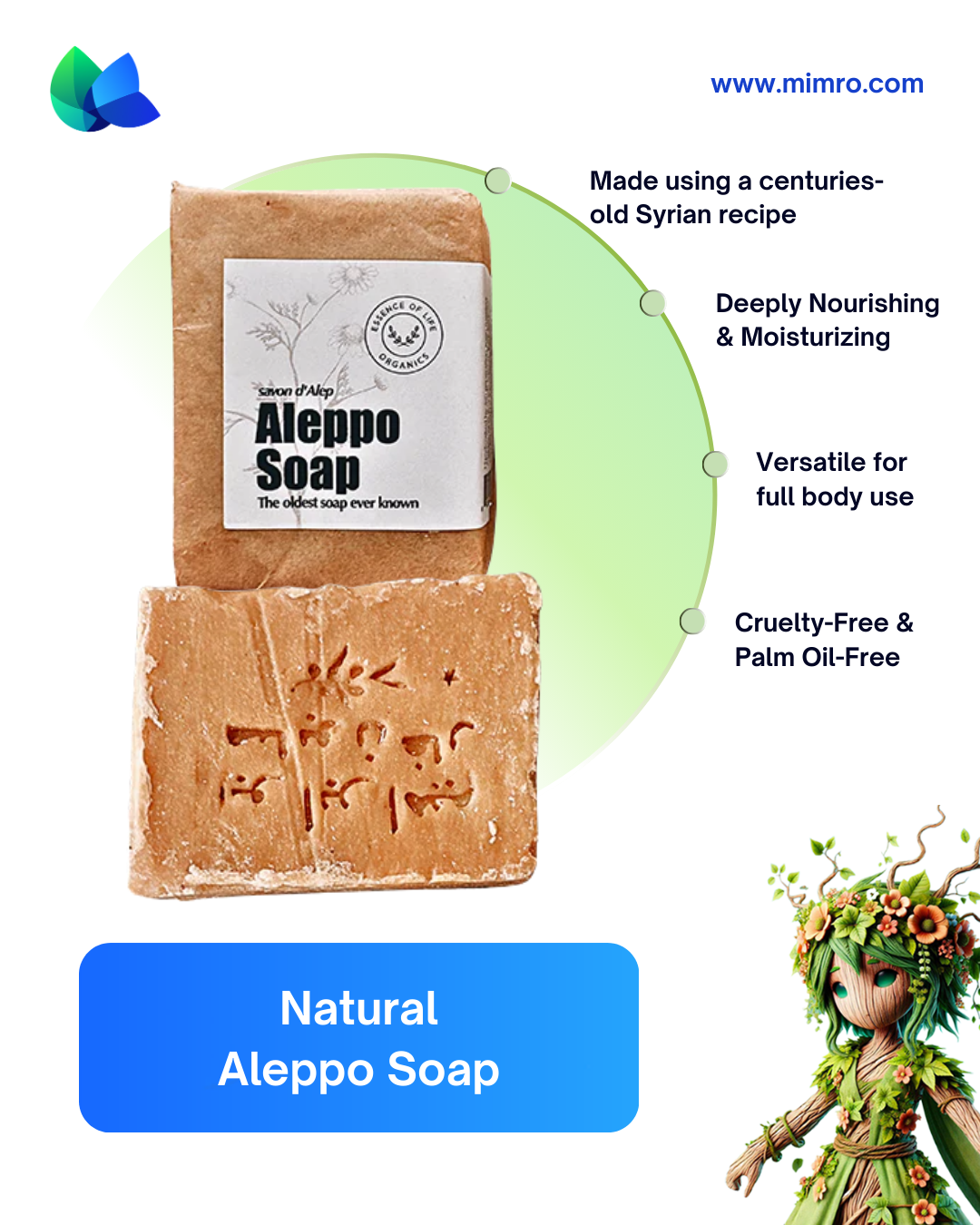 At mimro, we believe in skincare rooted in nature and tradition. Traditional Aleppo Soap offers simple, sustainable care that’s kind to both skin and the Earth.