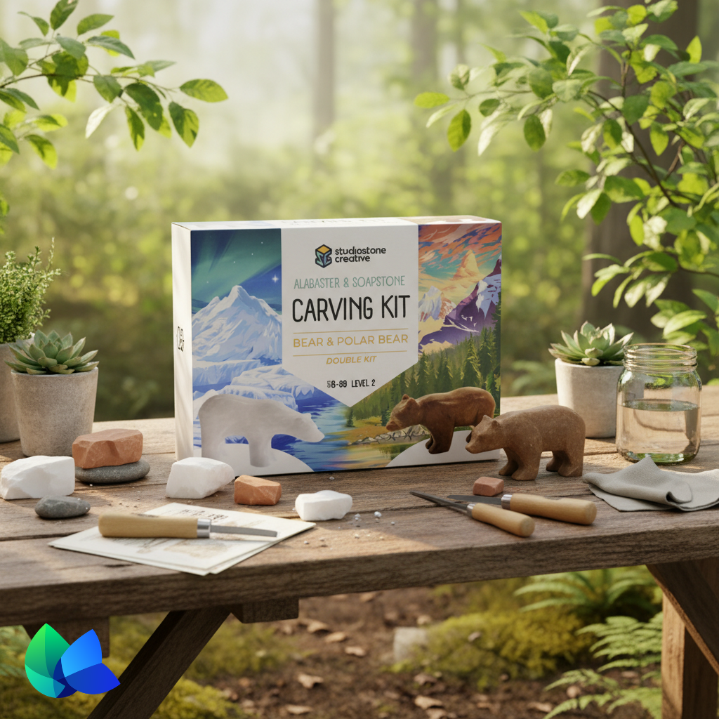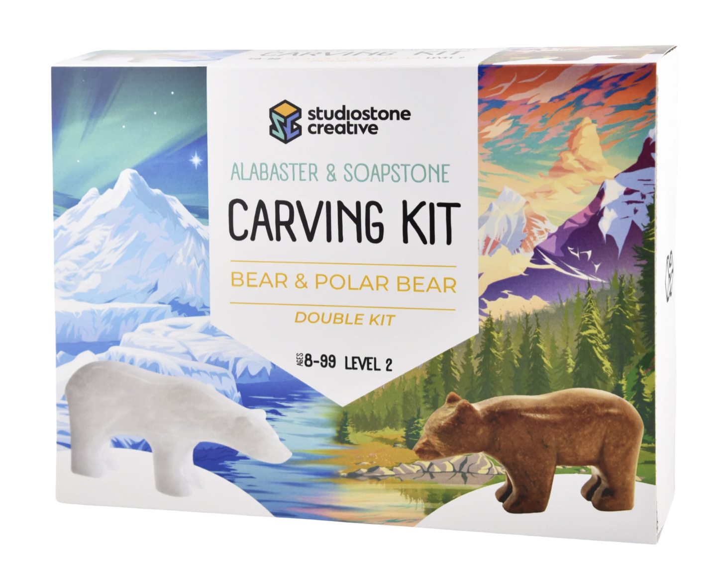 STUDIOSTONE CREATIVE Bear and Polar Bear Double Alabaster & Soapstone Kit | Available on mimro