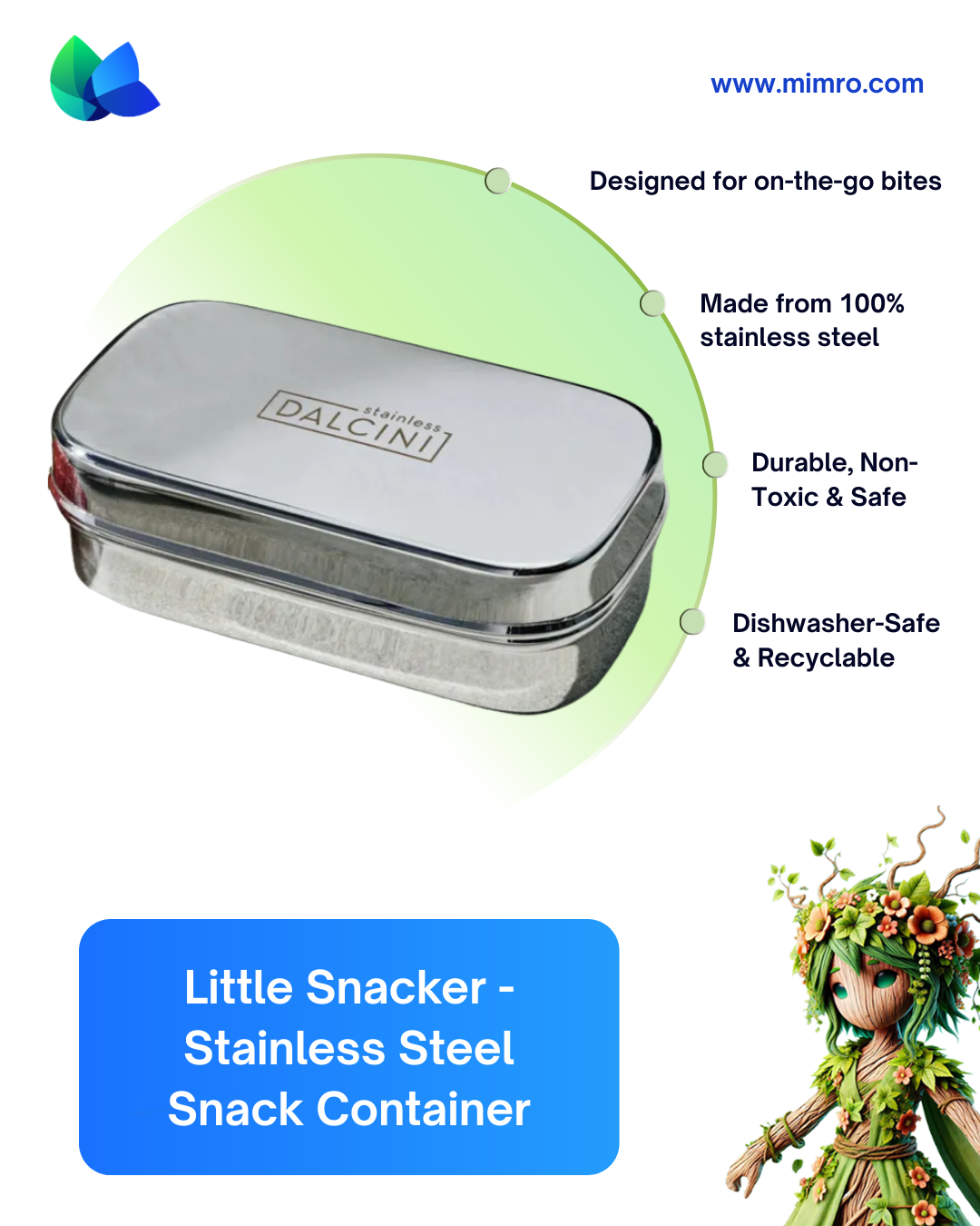 At mimro, we bring you eco-friendly kitchenware built to last. The Dalcini Stainless Little Snacker makes healthy, sustainable snacking easy, at home, work, or on the go.