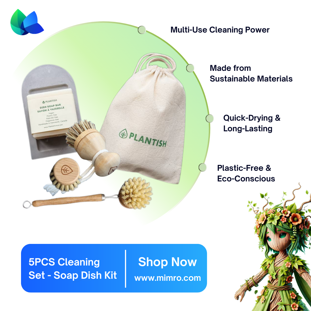 Each item in the set is made from sustainable wood, bamboo, and plant fibers, ensuring your cleaning tools are compostable, biodegradable, and free from synthetic plastics.