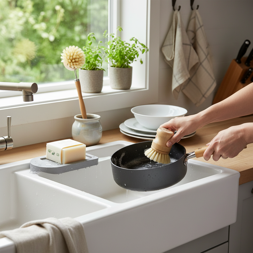 Skip the sponge and ditch synthetic dish racks. This kit replaces high-waste cleaning tools with compostable alternatives you can feel good about.