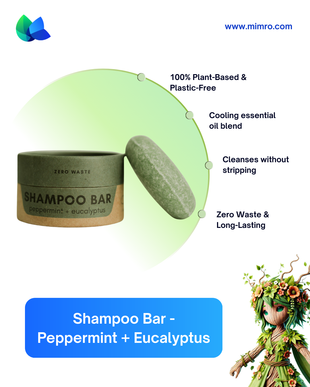 ZERO WASTE MVMT Shampoo Bar - Peppermint + Eucalyptus | Available on mimro
