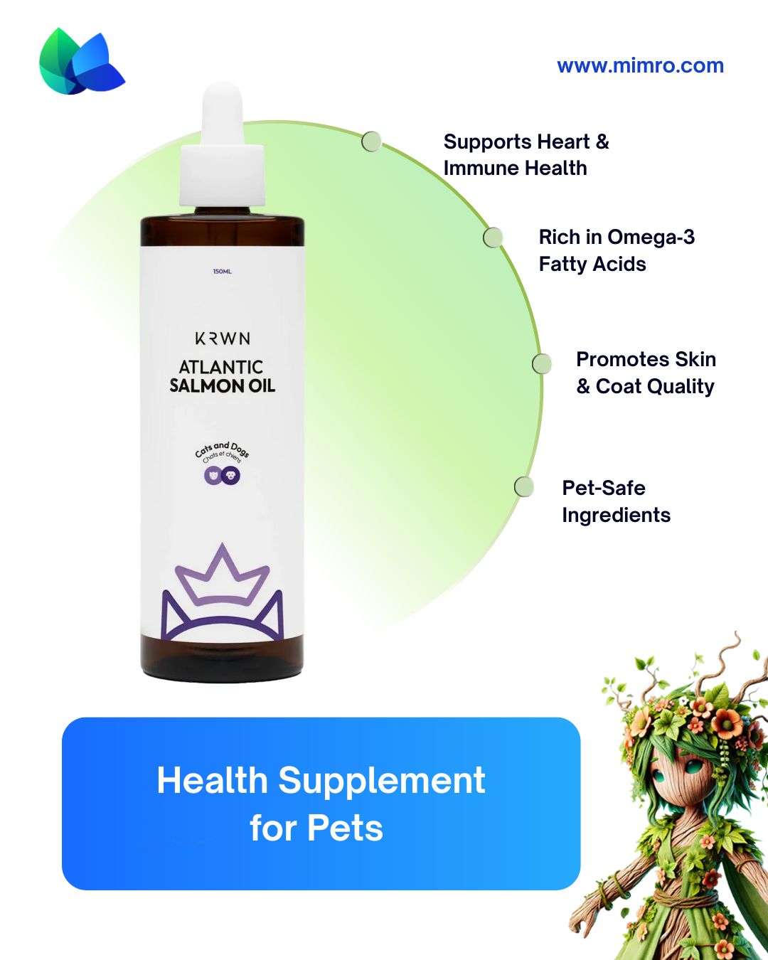 At mimro, we curate pet supplements that blend natural nutrition with everyday convenience. KRWN Atlantic Salmon Oil is a delicious, omega-rich way to support your furry friend’s health from the inside out.