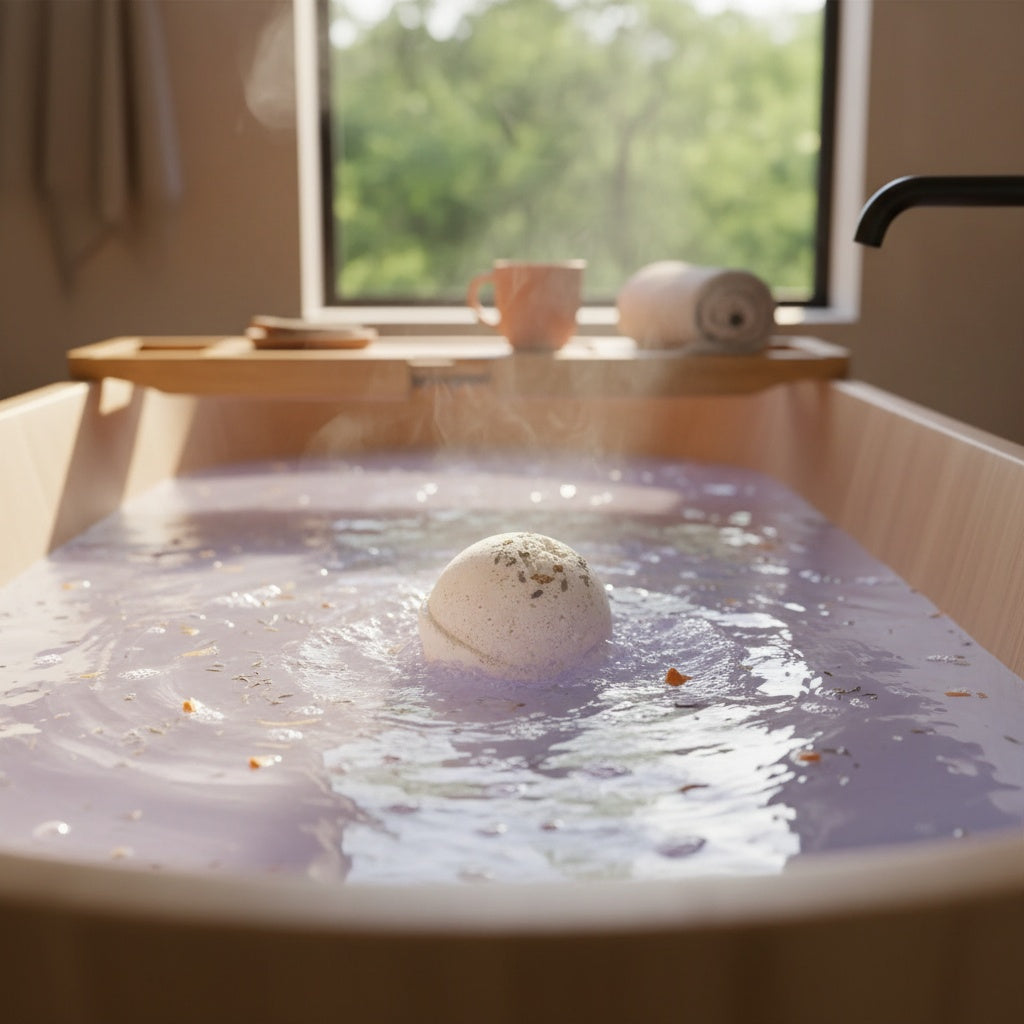 2ļøā£ Drop in the bath bomb and let it fizz.