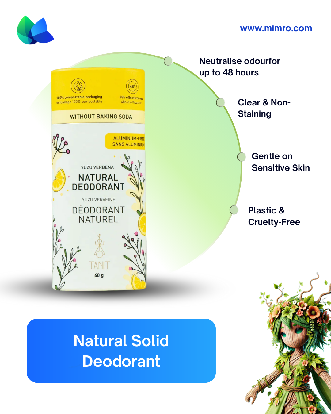 At mimro, we curate sustainable swaps that fit effortlessly into your routine. Tanit Natural Solid Deodorant Yuzu Verbena blends effective odour protection, gentle skincare, and eco-friendly design to redefine everyday freshness.