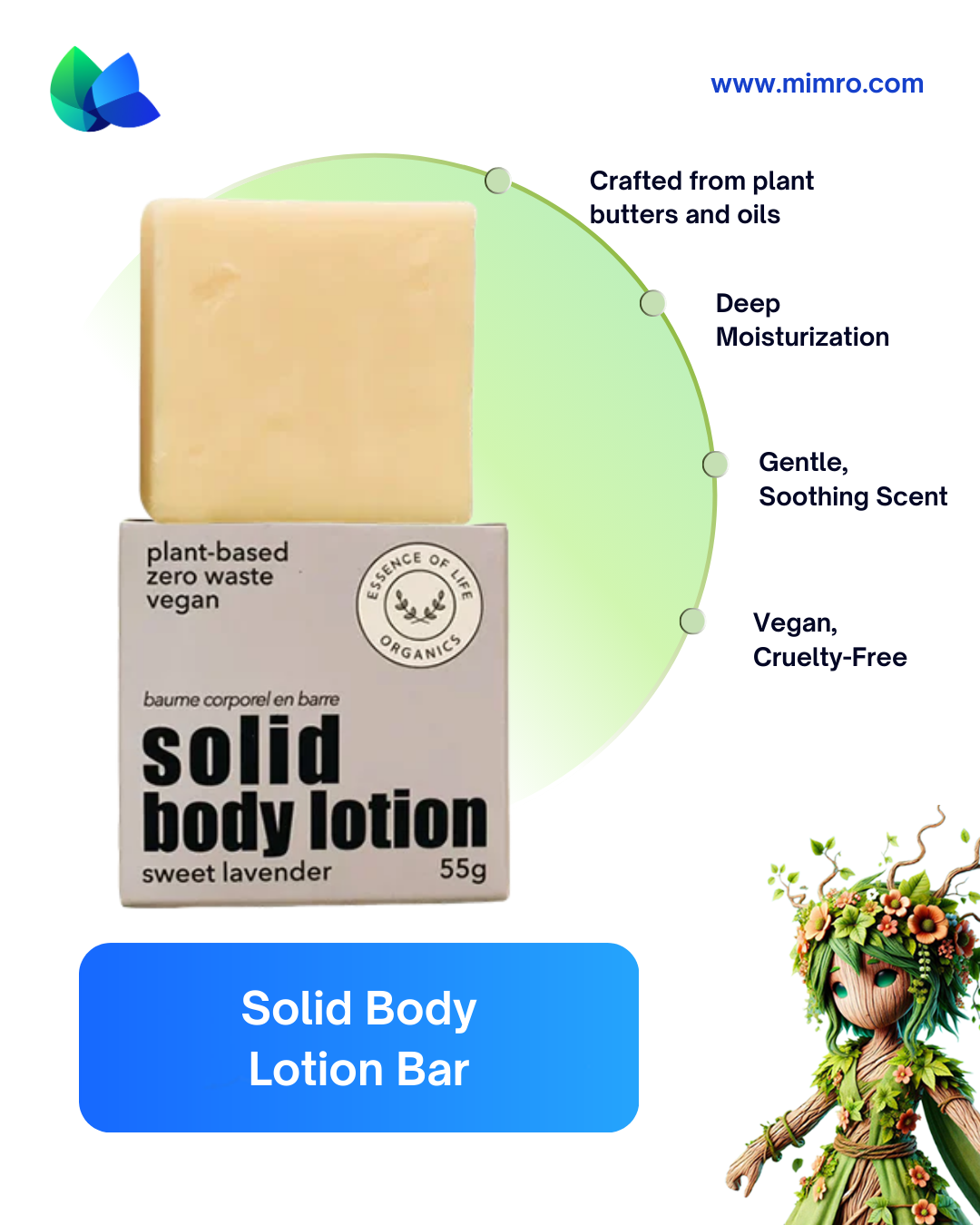 At mimro, we believe skincare should nourish you and the earth. The Solid Body Lotion Bar is an effortless, effective way to hydrate sustainably, no bottle required.