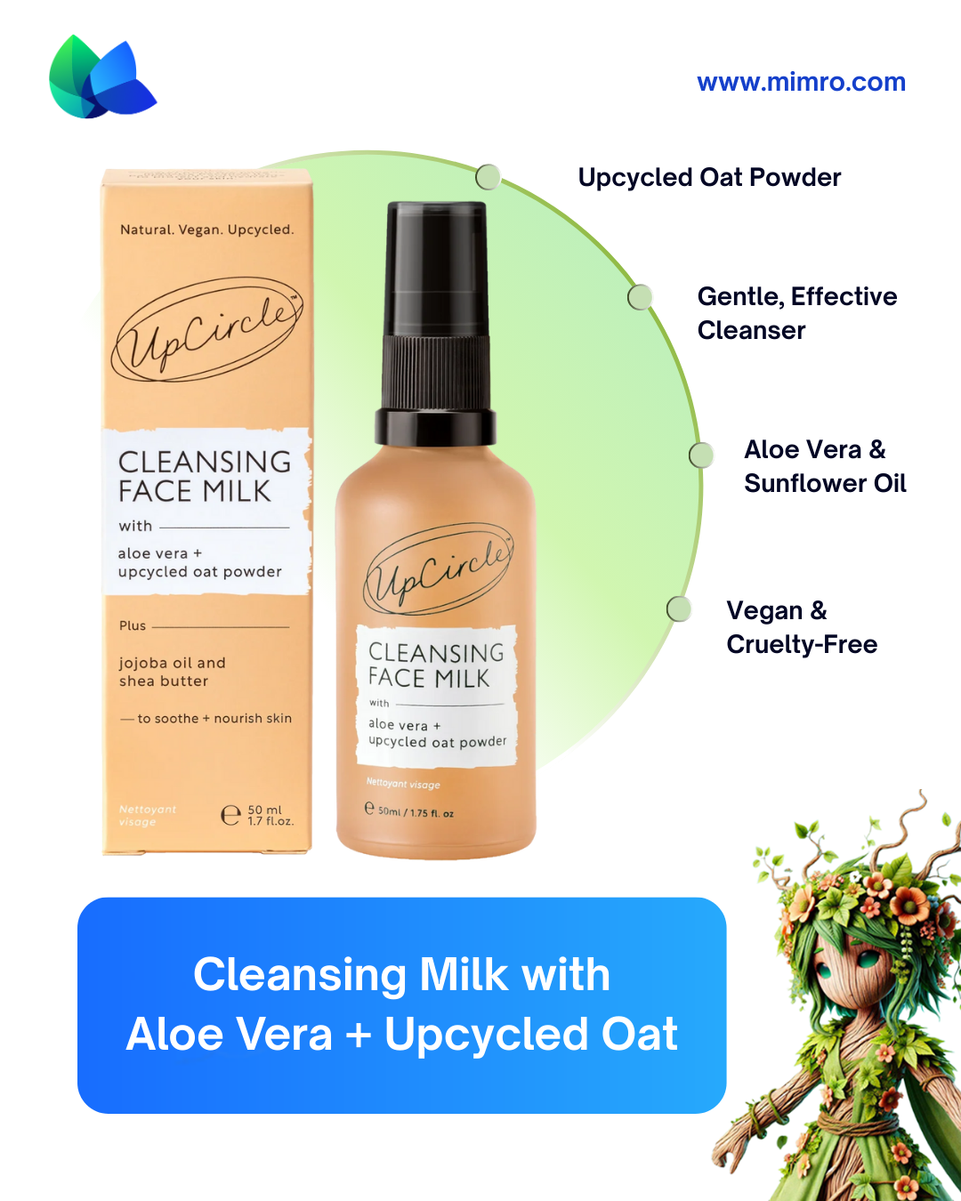 UPCIRCLE Cleansing Milk with Aloe Vera + Upcycled Oat - Travel Size 50ml | Available on mimro