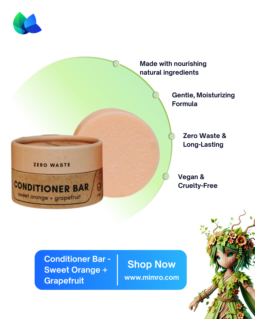At mimro, we believe small swaps make a big impact. The Sweet Orange + Grapefruit Conditioner Bar is a bright, effective, and waste-free way to care for your hair, without compromise.
