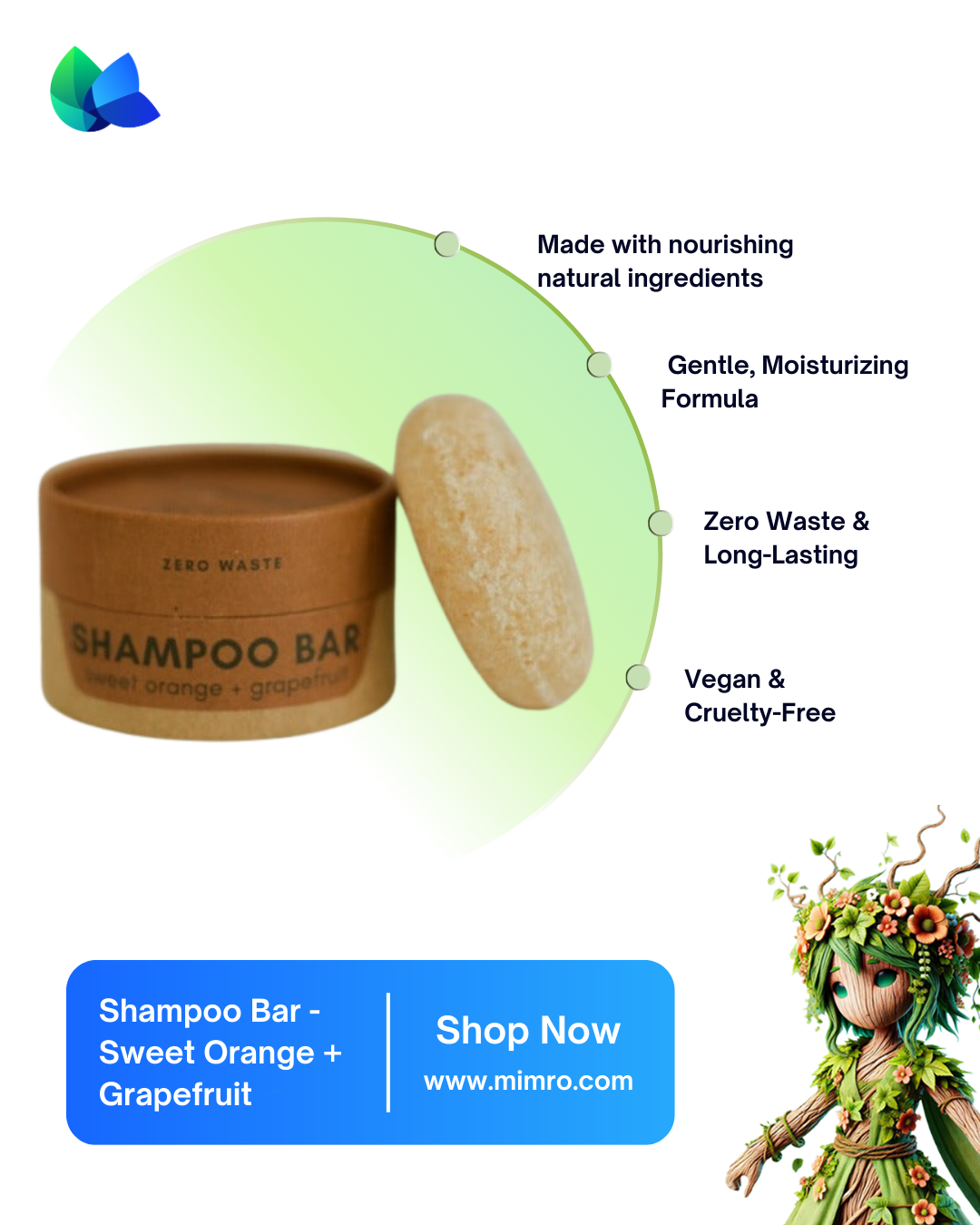 At mimro, we believe sustainable beauty starts with smart swaps. The Sweet Orange + Grapefruit Shampoo Bar brings you clean, happy hair without the plastic bottle.