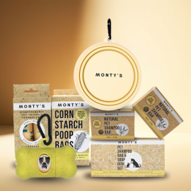 The Pet Care Bundle delivers a complete eco-friendly pet routine: a collapsible pet bowl, poop bag dispenser with 15 compostable bags, shampoo bar for dogs & cats, a shampoo bar + wheat‑straw soap dish set, and 120 pcs compostable cornstarch poop bags (9″ × 13″).