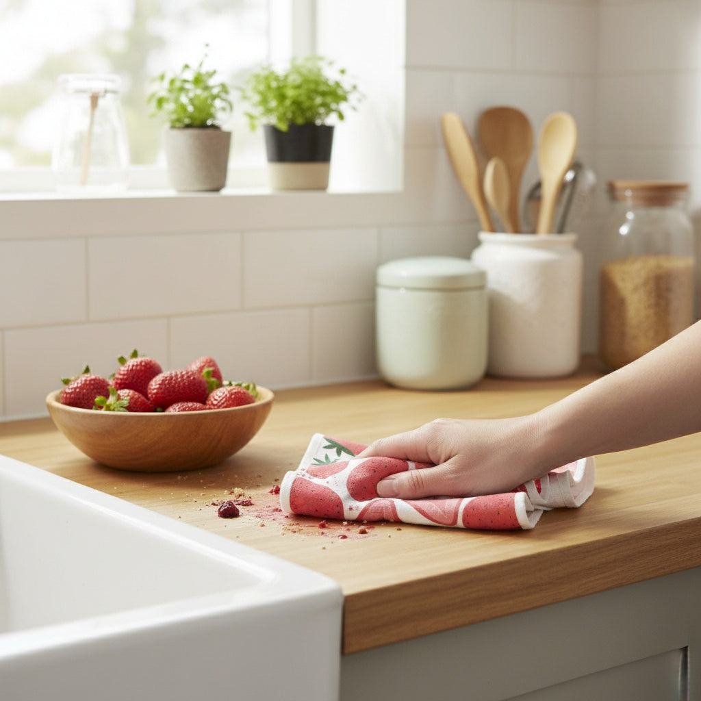 2️⃣ Wipe spills, clean dishes, scrub surfaces.