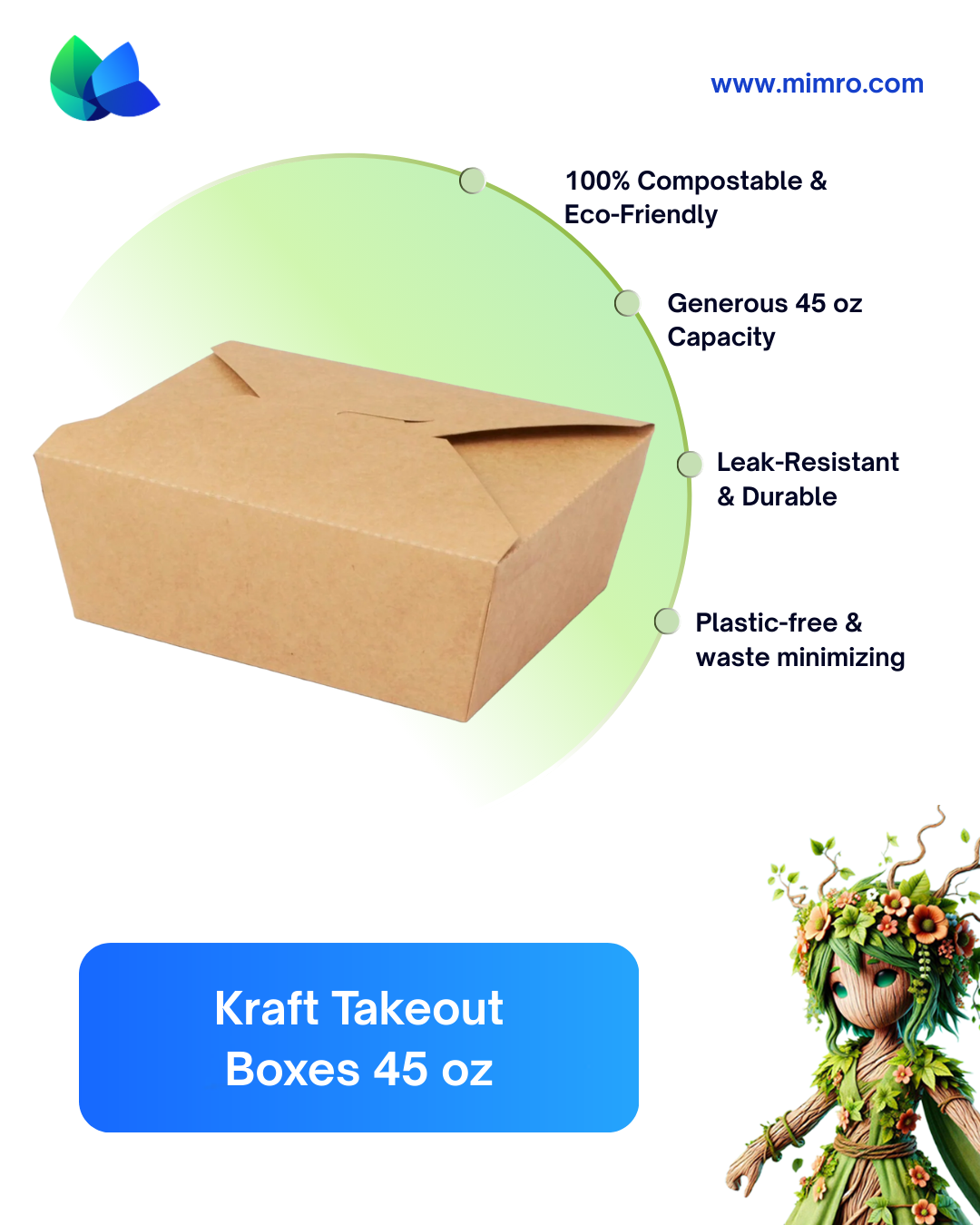 mimro makes sustainable living effortless, so you can enjoy flavorful meals on the move, with a clean conscience. The Soyle 45 oz Compostable Kraft Takeaway Boxes deliver functionality and eco-conscious design in every bite.