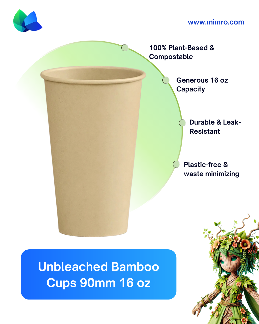 SOYLE 1000PCS Unbleached Bamboo Cups 90mm 16 oz | Available on mimro