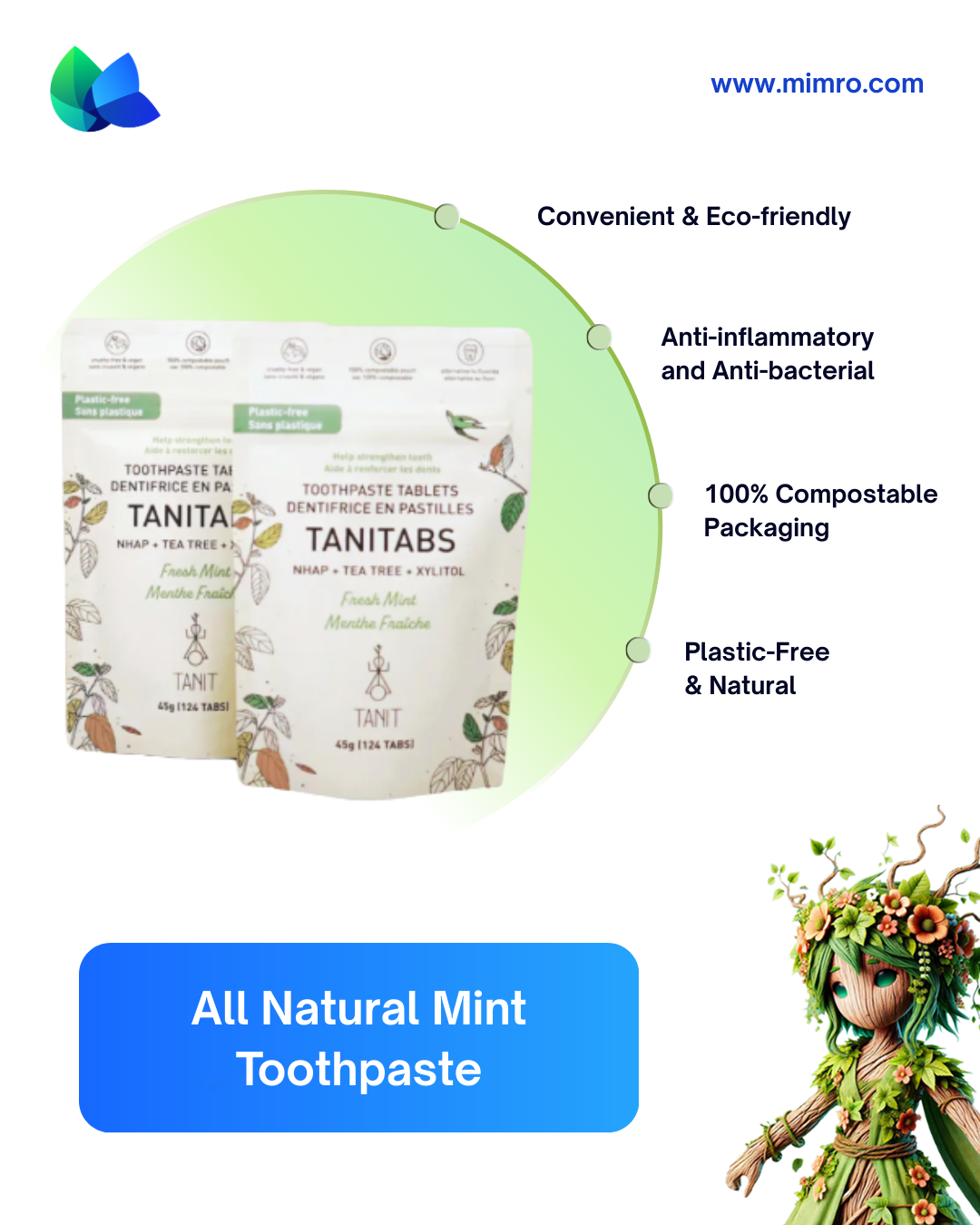 TANIT - 124 Tablets All Natural Fresh Mint Toothpaste - Compostable Refill | Available on mimro