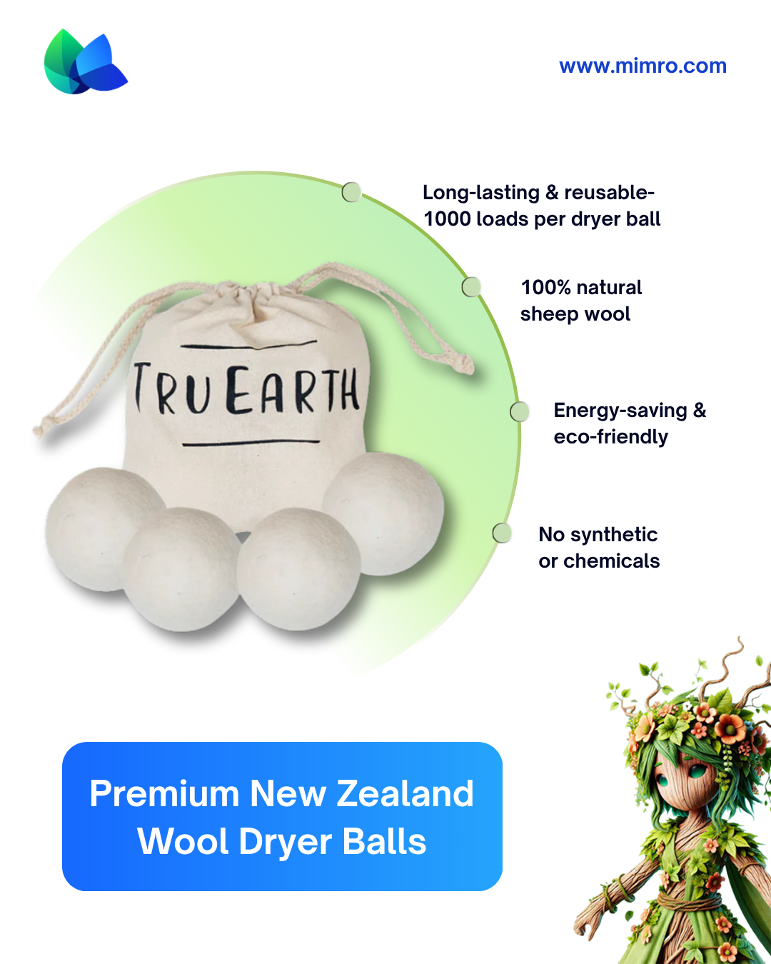 TRU EARTH - 4pcs Premium New Zealand Wool Dryer Balls | Available on mimro
